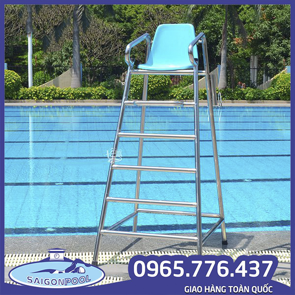Ghế quan sát hồ bơi hay còn gọi là ghế cứu hộ. Thân ghế được làm từ chất liệu inox, chống gỉ sét, mặt ghế thiết kế bằng chất liệu nhựa composit chịu được tác động trong môi trường hoá chất và ánh sáng mặt trời.